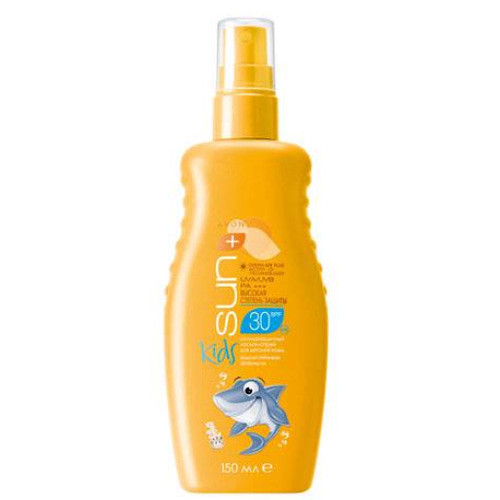 Voděodolný sprej na opalování pro děti s tyrkysovou barvou, která jako kouzlem zmizí ihned po nanesení.